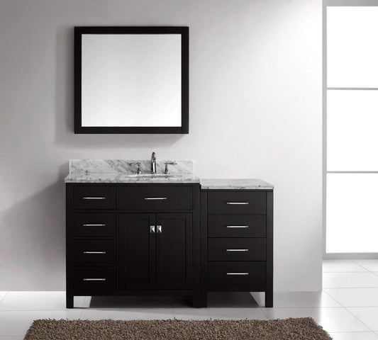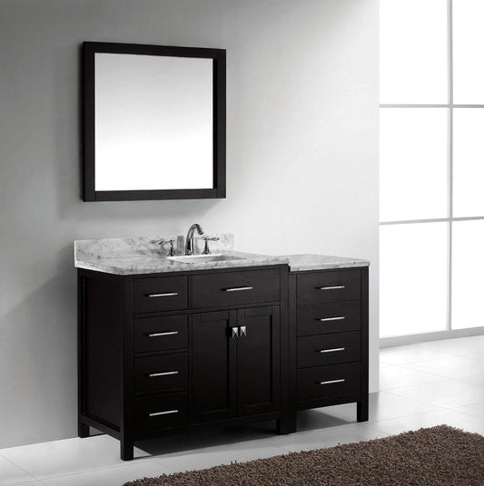 Virtu USA Caroline Parkway 57 Single Bathroom Vanity Set in Espresso w/ Italian Carrara White Marble Counter-Top | Square Basin - Leftside Drawer