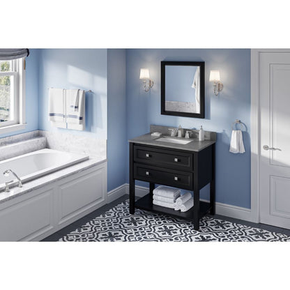 Jeffrey Alexander 36" Black Adler Vanity, Steel Grey Cultured Marble Vanity Top, undermount rectangle bowl | VKITADL36BKSGR