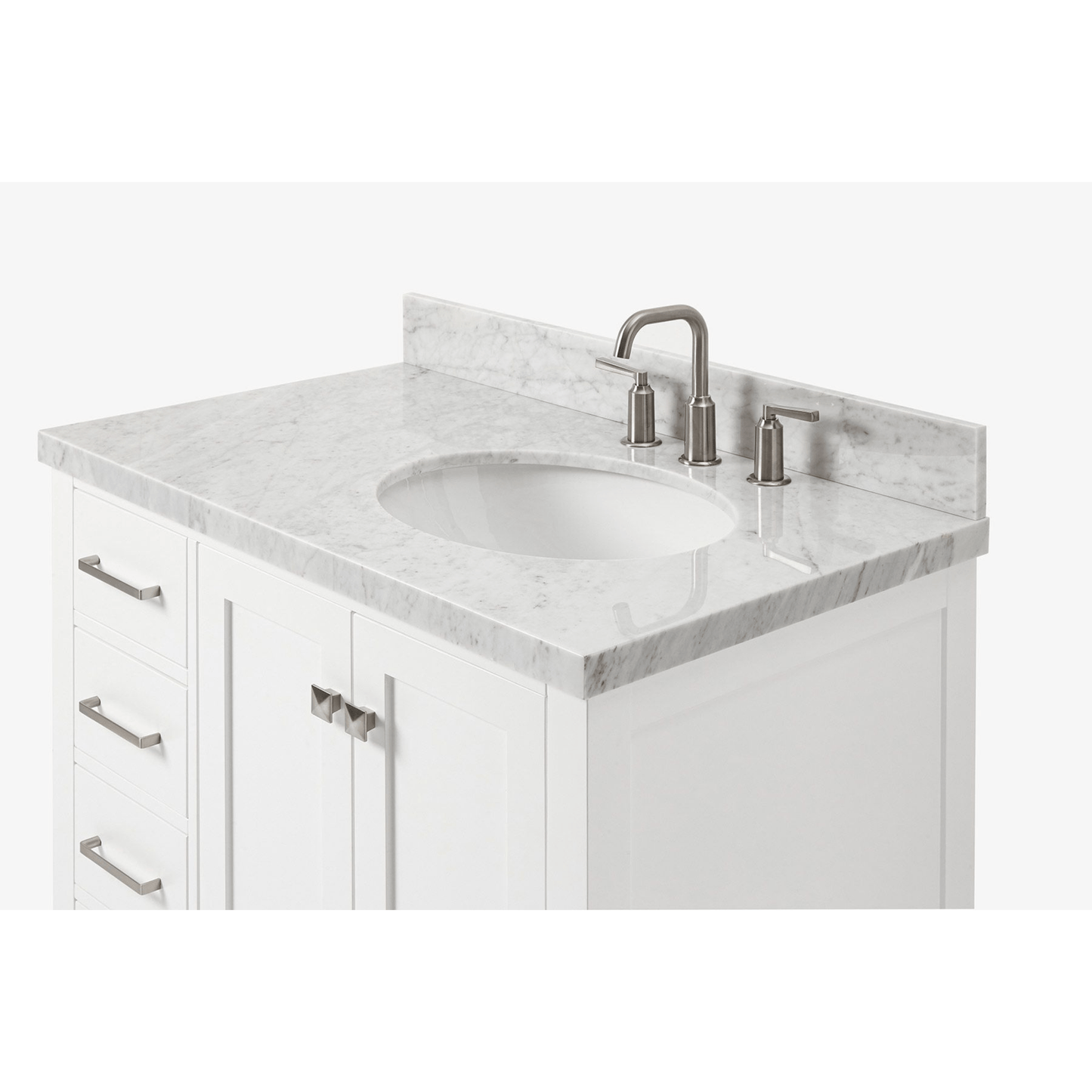 - Carrara White marble countertop with 1.5 in. edge and matching backsplash