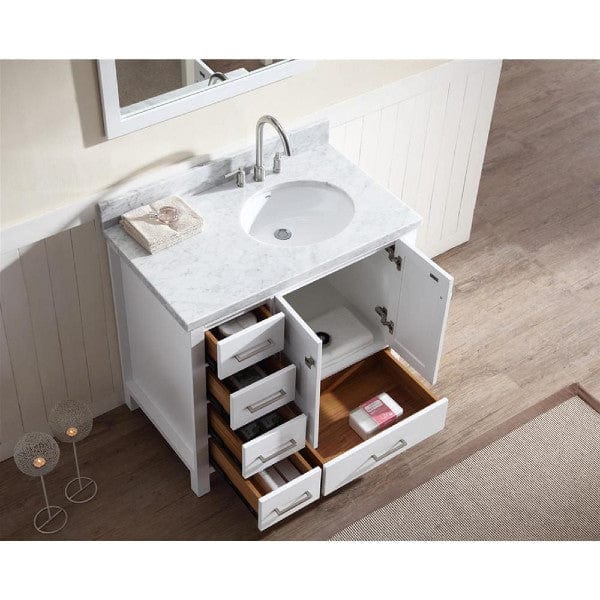 Ariel Cambridge 37 Inches Right Offset Single Oval Sink Vanity In White