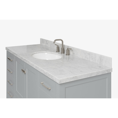 - Carrara White marble countertop with 1.5 in. edge and matching backsplash