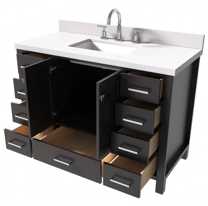 Cambridge Transitional Espresso 49 Inch Rectangle Sink Vanity w/ White Quartz Countertop By Ariel
