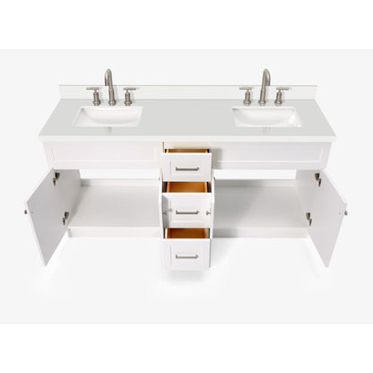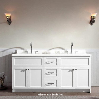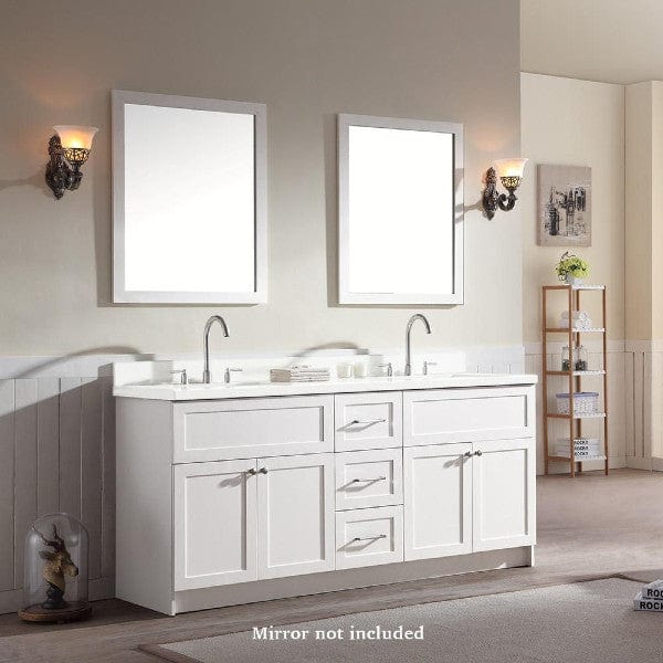 Ariel Hamlet 73 Inches Double Sink Rectangle Vanity in White with White Quartz Countertop