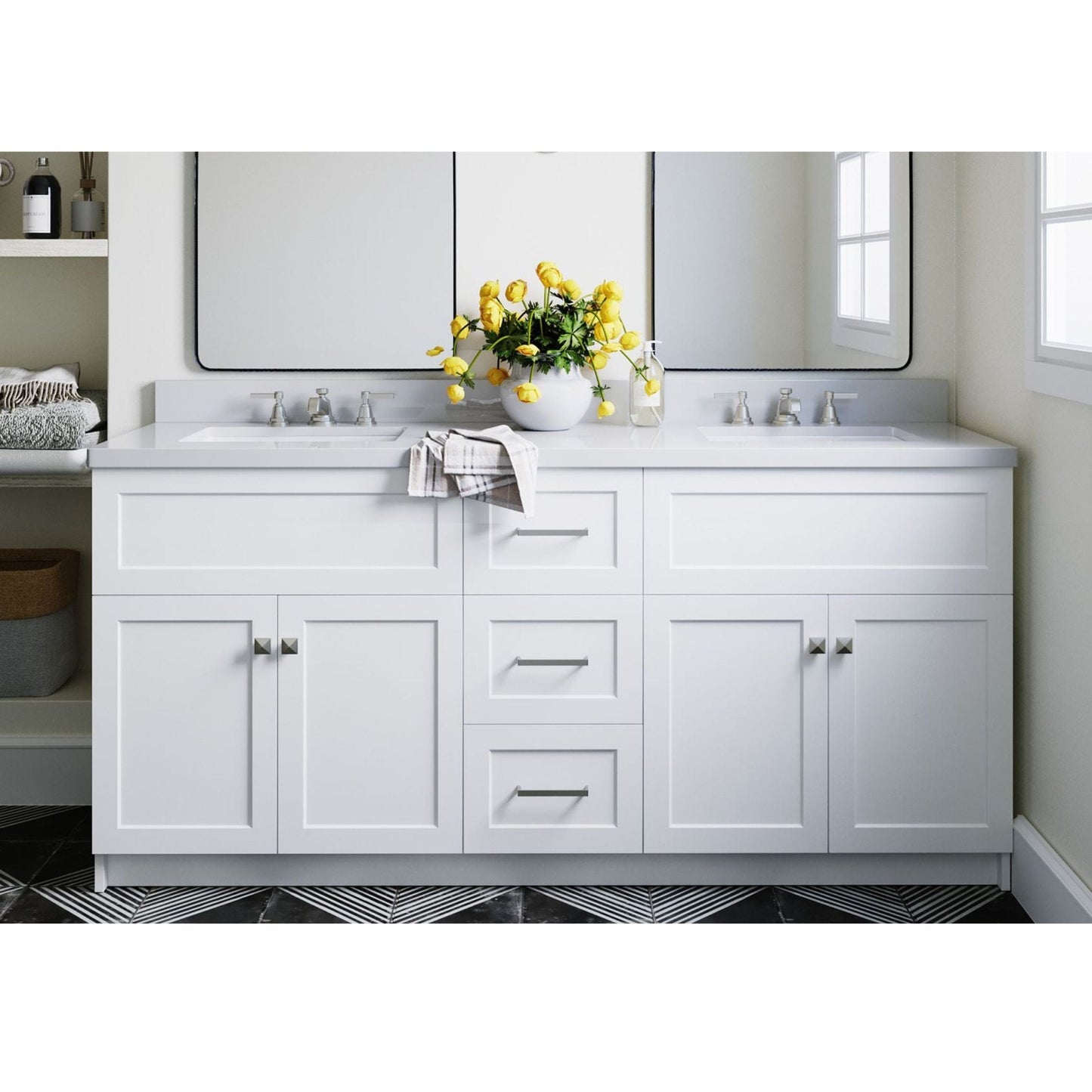 Give your bathroom decor a makeover with a modern bathroom vanity from ARIEL. The Hamlet series offers granite or quartz countertops mounted above solid wood cabinets. With satin nickel finish hardware on the drawers and cabinet doors, these vanity sets will add an elegant aesthetic to a bathroom remodel.