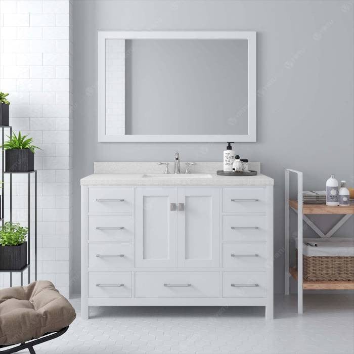 Caroline Avenue Contemporary 48" Single Square Sink Vanity Set in White with Dazzle White Top by Virtu USA