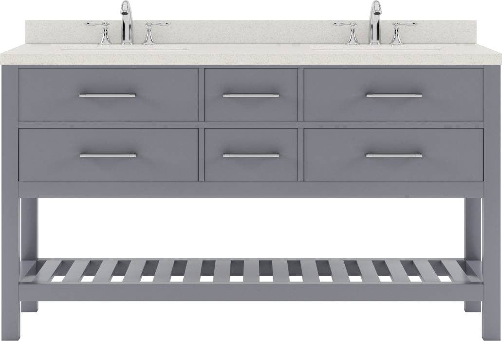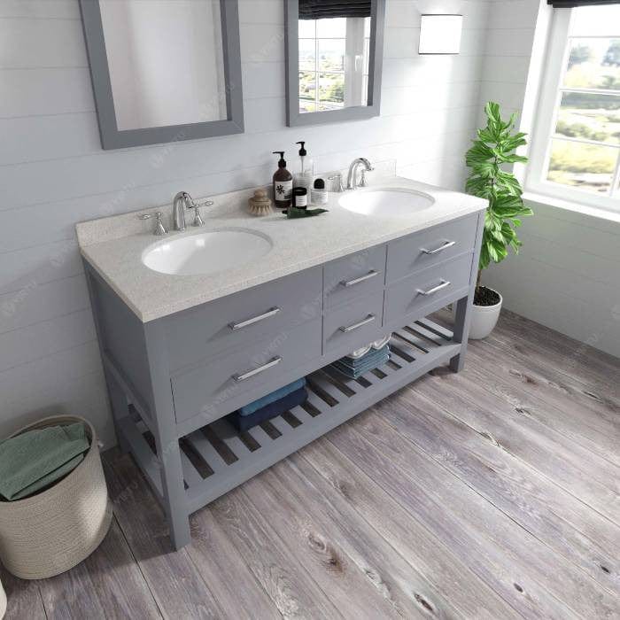 Caroline Estate Contemporary 60" Double Round Sink Vanity in Gray with Dazzle White Top by Virtu USA