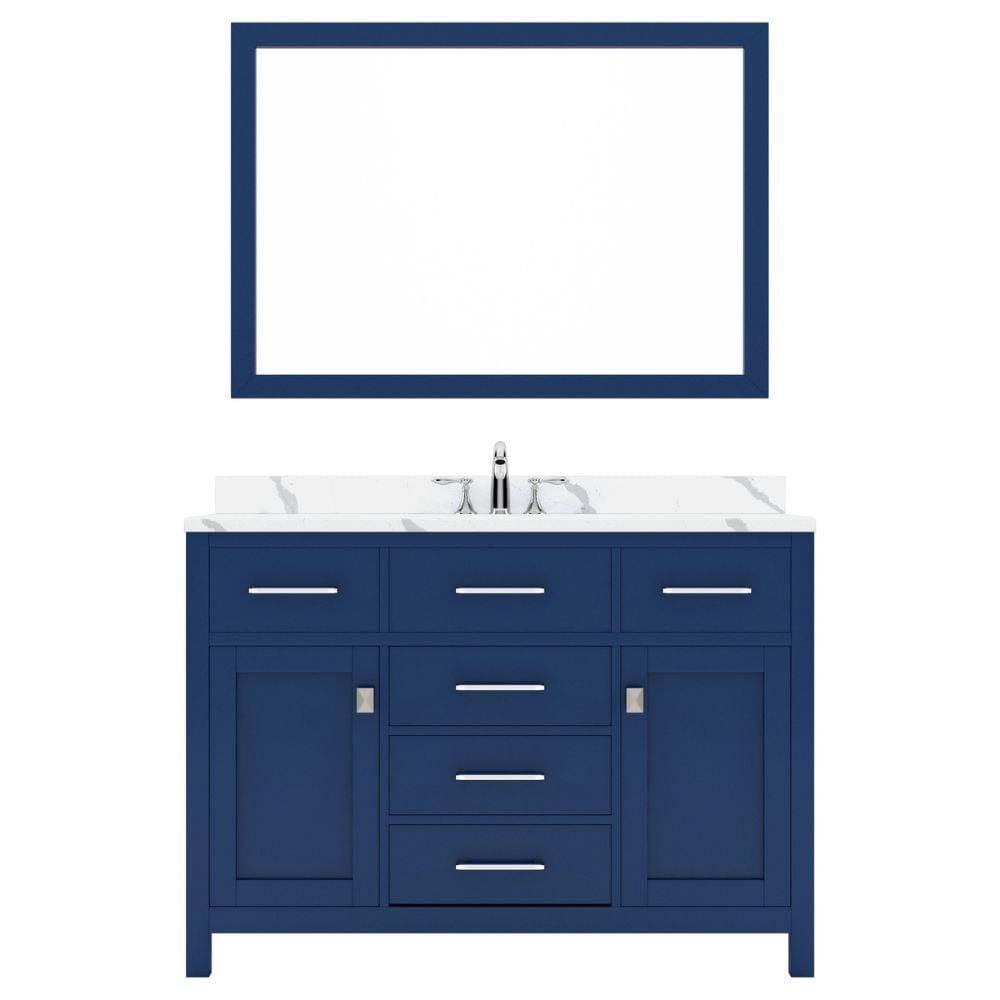 Virtu USA Caroline 48" Single Bath Vanity in French Blue with Calacatta Quartz Top and Round Sink with Polished Chrome Faucet with Matching Mirror | MS-2048-CCRO-FB-002