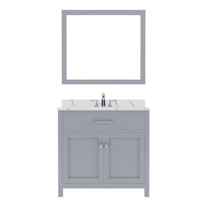 Virtu USA Caroline 36" Single Bath Vanity in Espresso with Calacatta Quartz Top and Round Sink with Matching Mirror | MS-2036-CCRO-ES