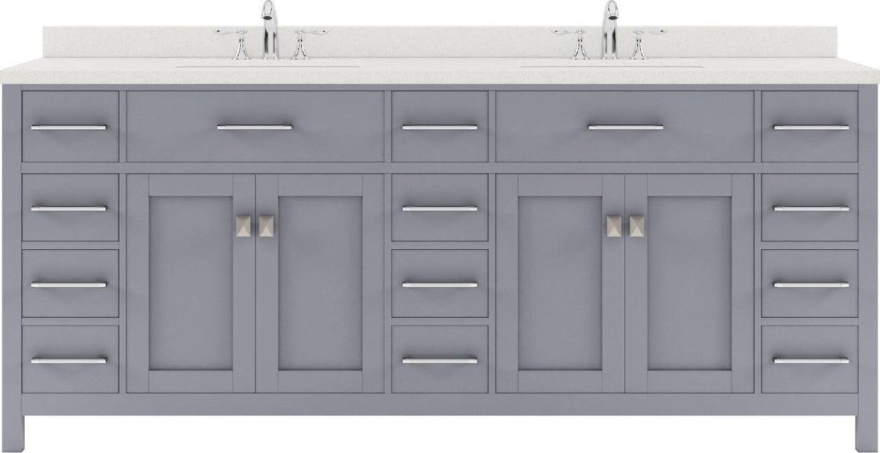 Caroline Parkway Contemporary 78" Double Square Sink Vanity in Gray with Dazzle White Top by Virtu USA