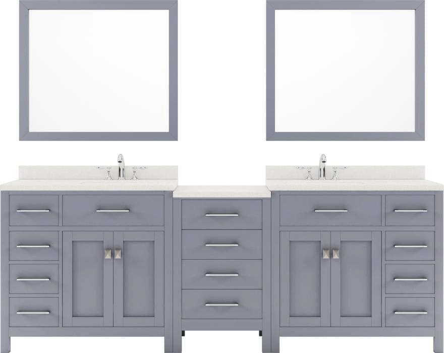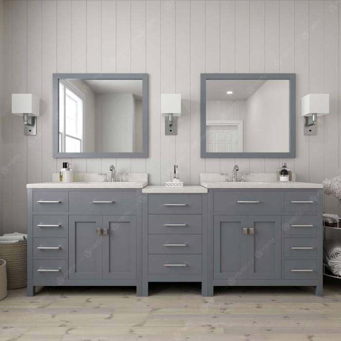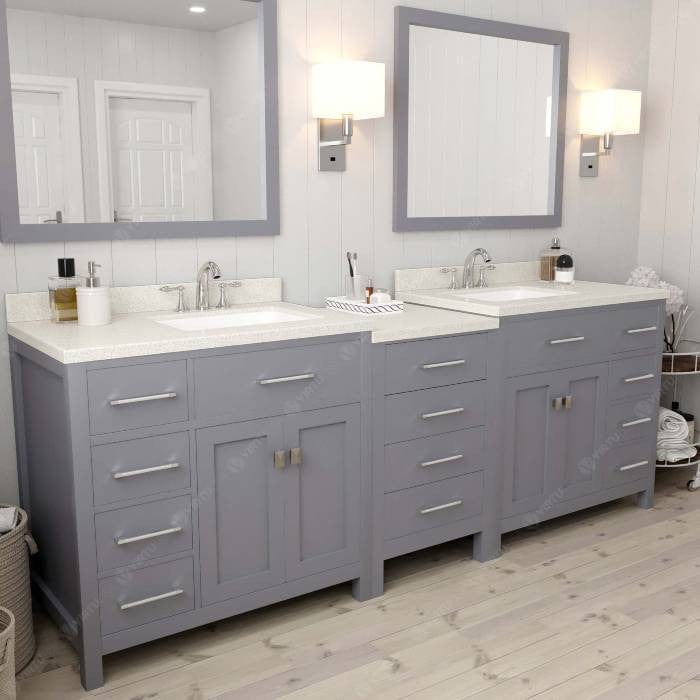 Caroline Parkway Contemporary 93" Double Square Sink Vanity Set in Gray with Dazzle White Top by Virtu USA