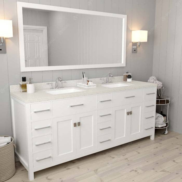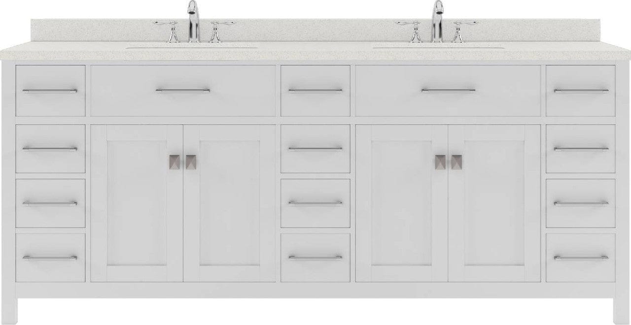 Caroline Parkway Contemporary 78" Double Square Sink Vanity in White with Dazzle White Top by Virtu USA