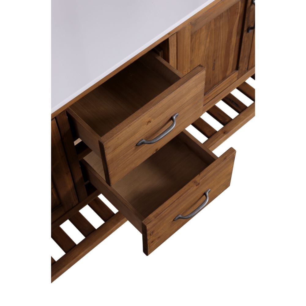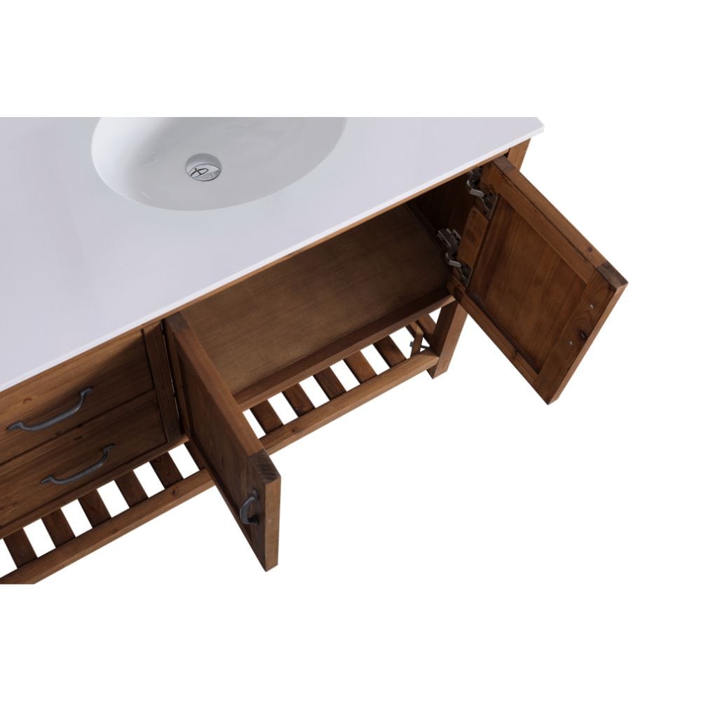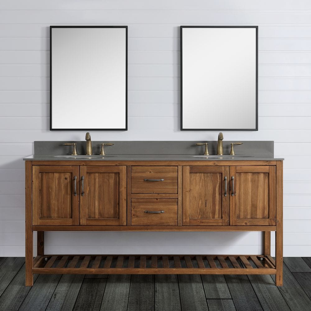The Austin bathroom vanity cabinet by Design Element combines classic rustic charms with modern features. The cabinet is made from 100% reclaimed wood which is both durable and environmentally friendly. Each Austin vanity has its own unique history. The soft closed doors and drawers bring modern features to the vanity, while the included antique pewter metal hardware provides the perfect finishing touch. Vanity top, sink, faucet and drain are not included. *Due to the nature of reclaimed wood, each vanity may have distinct markings, knots, slight cracks, and uneven surfaces. These imperfections only add to the rustic beauty and will not hinder functionality. Adult assembly required.