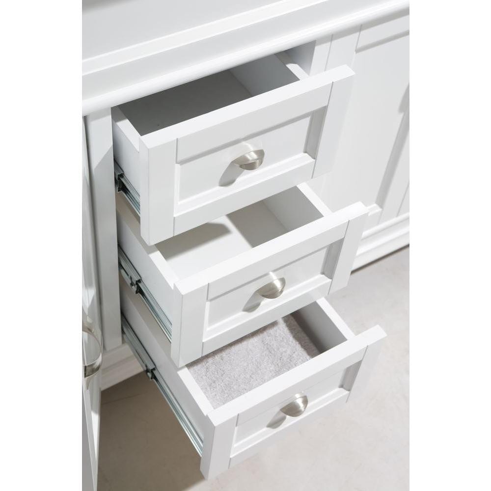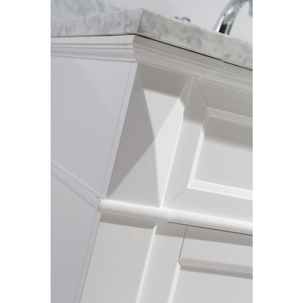 Details of the Hudson 61" Double Sink Vanity Set in White with White Carrara Marble Countertop