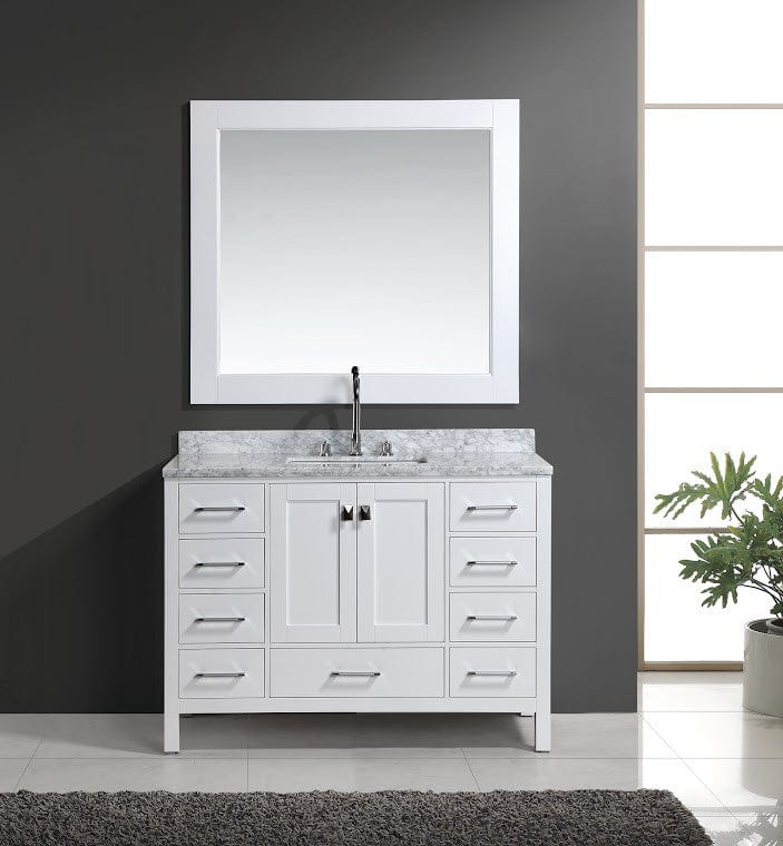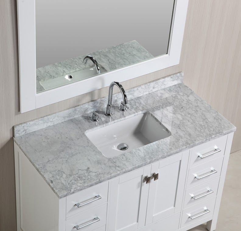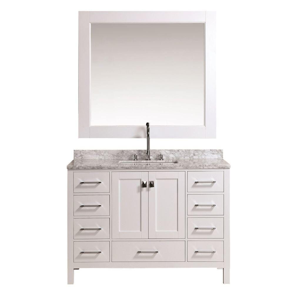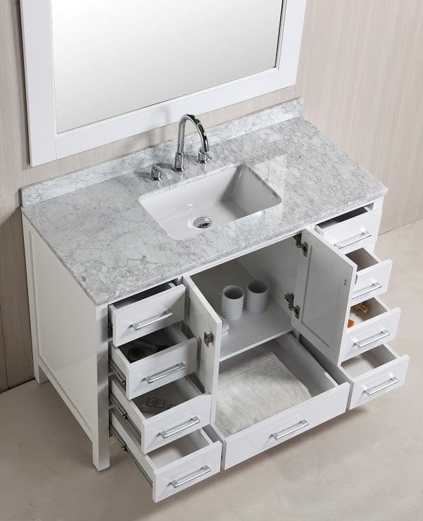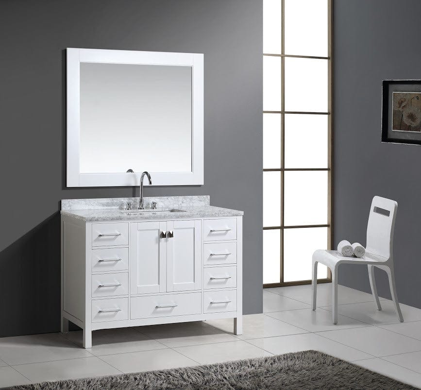 Details of the London 48" Single Sink Vanity Set in White Finish