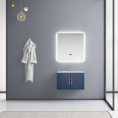 The wall-mounted Geneva vanity in navy blue from Lexora is a beautiful blending of postmodern style and sensible functionality. Its simple, box-like design is complemented by a countertop that lends hints of classical style. When mounted on the wall, the Geneva vanity leaves ample space beneath for additional storage—ideal for bathrooms with limited space. Available in different colors, you can easily match this vanity to any bathroom décor. This piece is all you need to give your bathroom a total makeover.