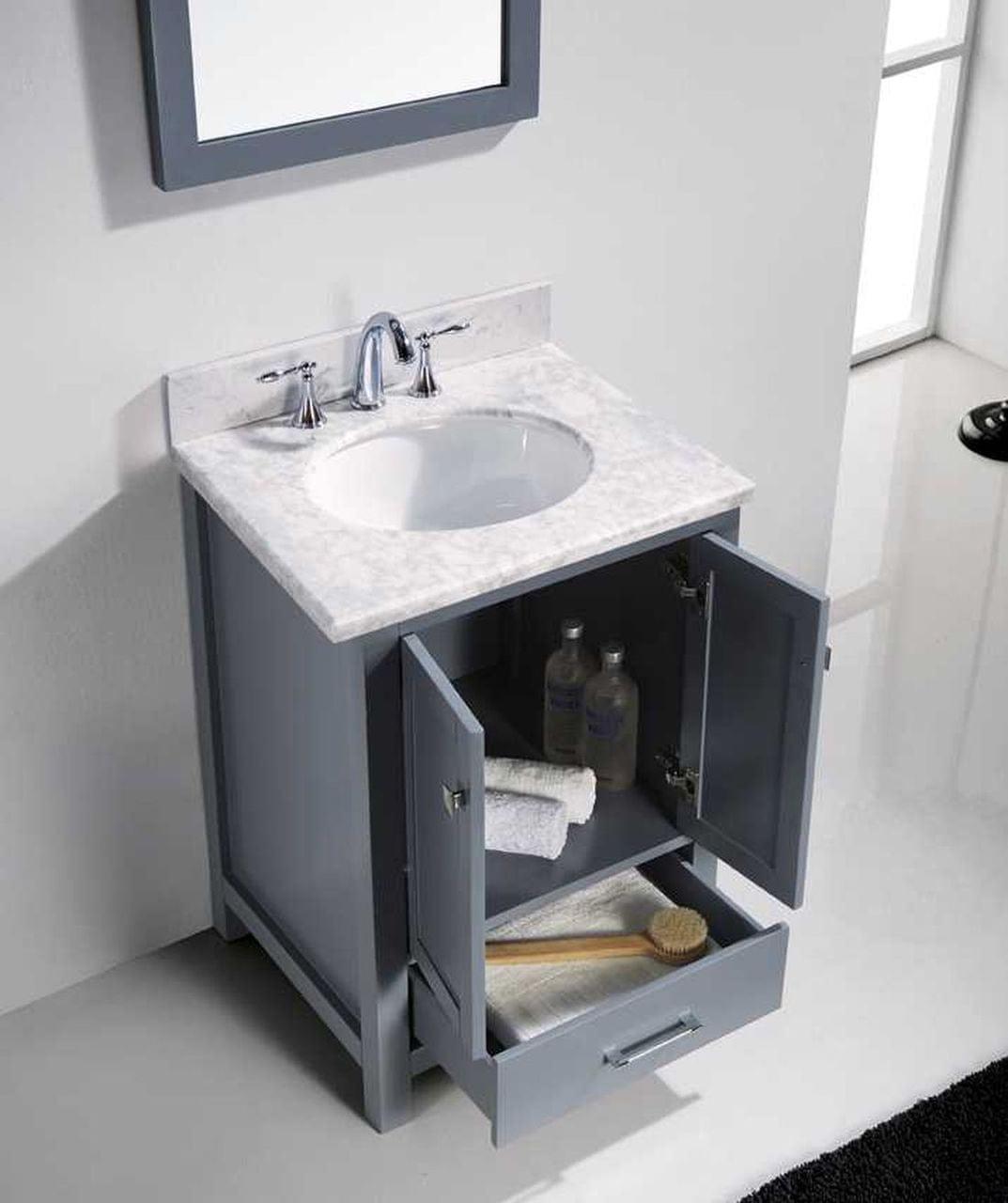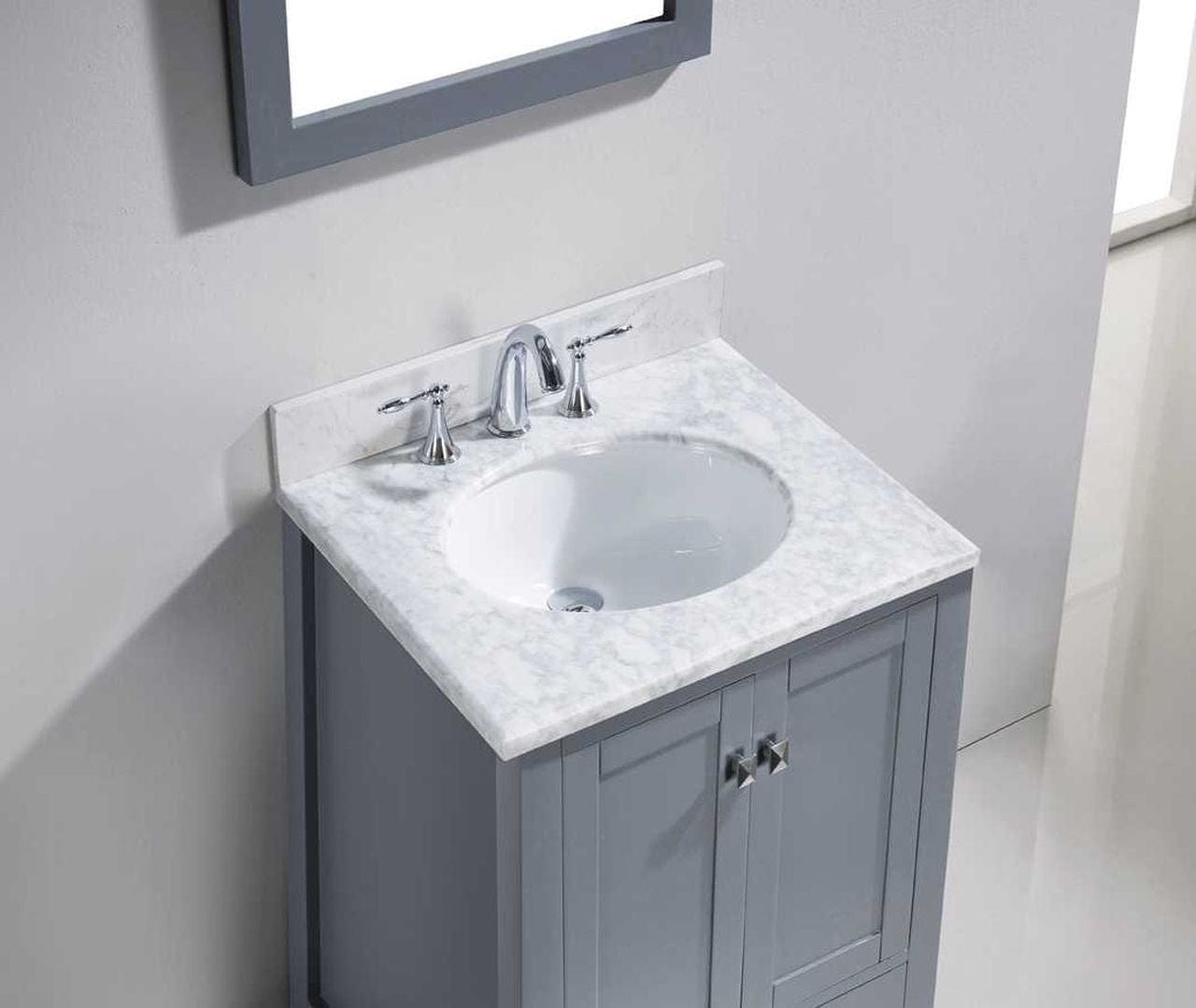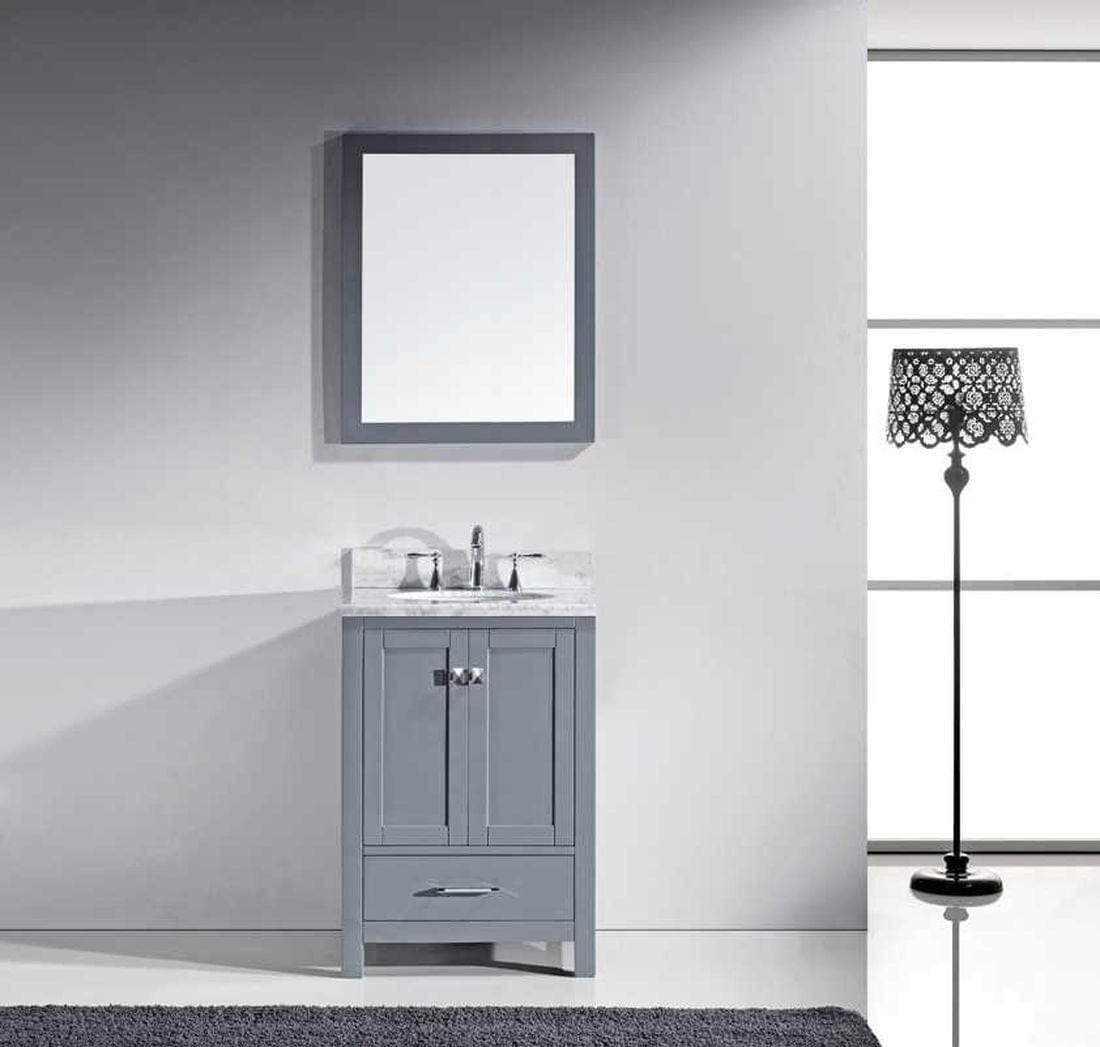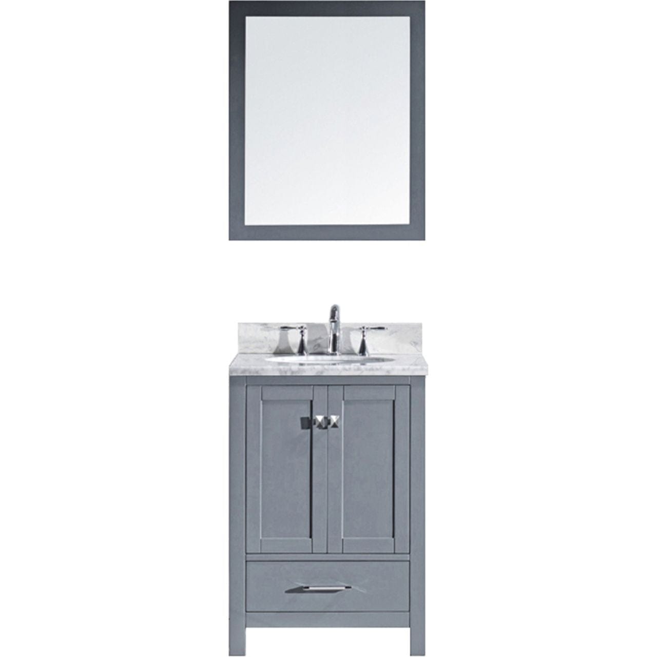 Details of the Virtu USA Caroline Avenue 24" Single Bathroom Vanity Set in Grey w/ Italian Carrara White Marble Counter-Top | Round Basin