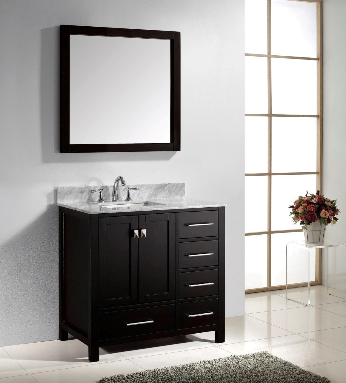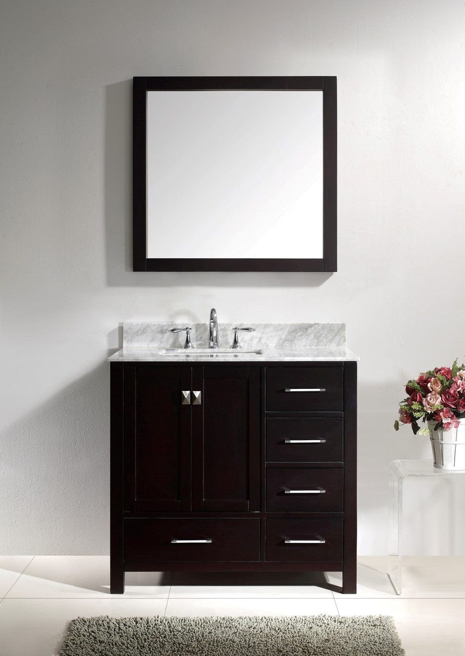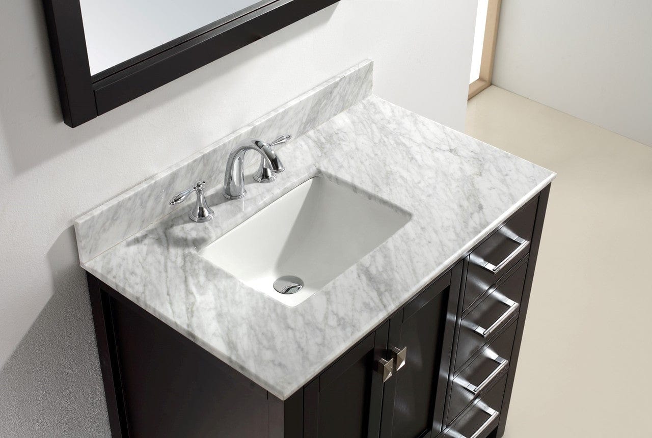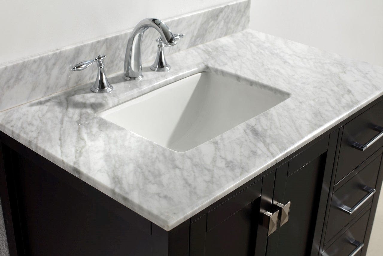 Details of the Virtu USA Caroline Avenue 36" Single Bathroom Vanity Set in Espresso w/ Italian Carrara White Marble Counter-Top| Square Basin