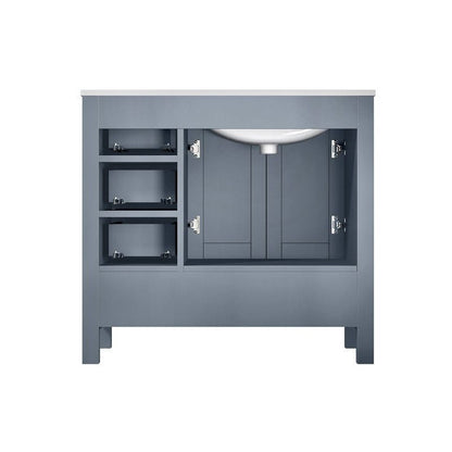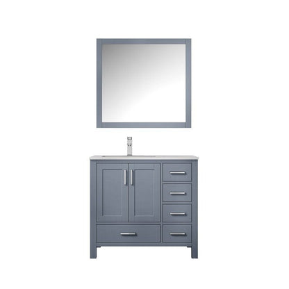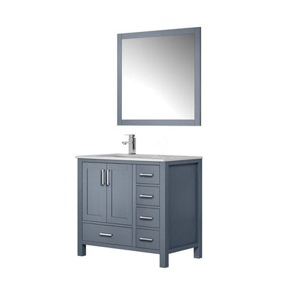 Details of Jacques Modern 36 Inch Dark Grey Single Vanity, White Carrara Marble Top, White Square Sink and 34 Inch Mirror - Left Version by Lexora