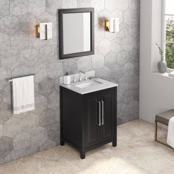 Cade Modern 24" Black Single Sink Vanity with White Carrara Marble Top by Jeffrey Alexander