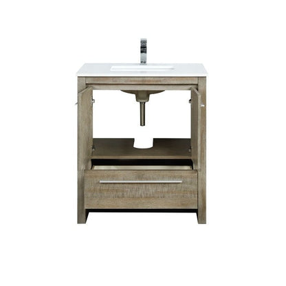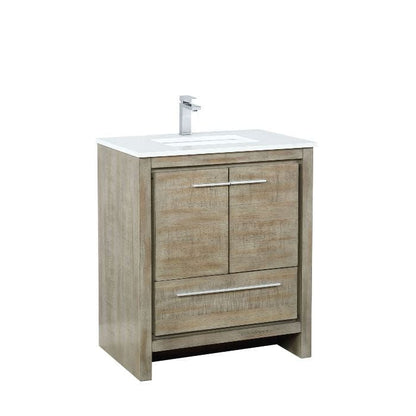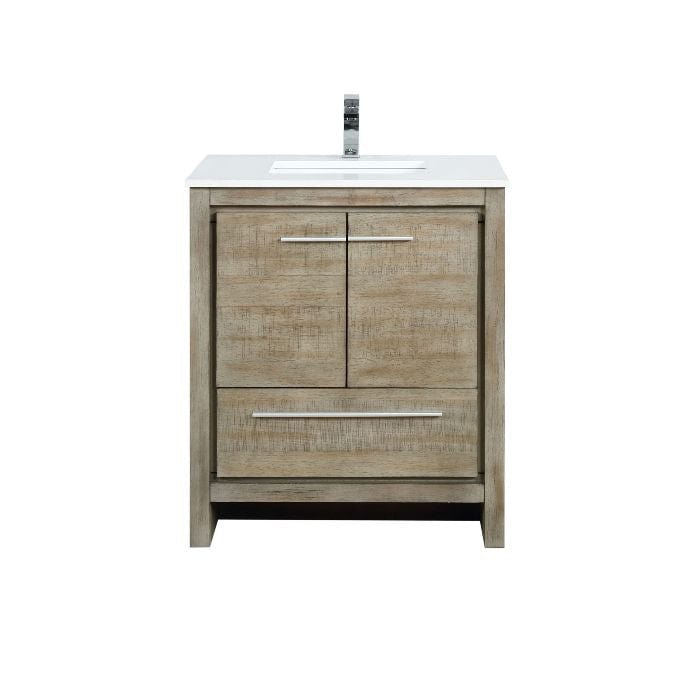 Lafarre 30 Inch Rustic Acacia Bathroom Vanity, White Quartz Top, White Square Sink, and Balzani Gun Metal Faucet Set by Lexora