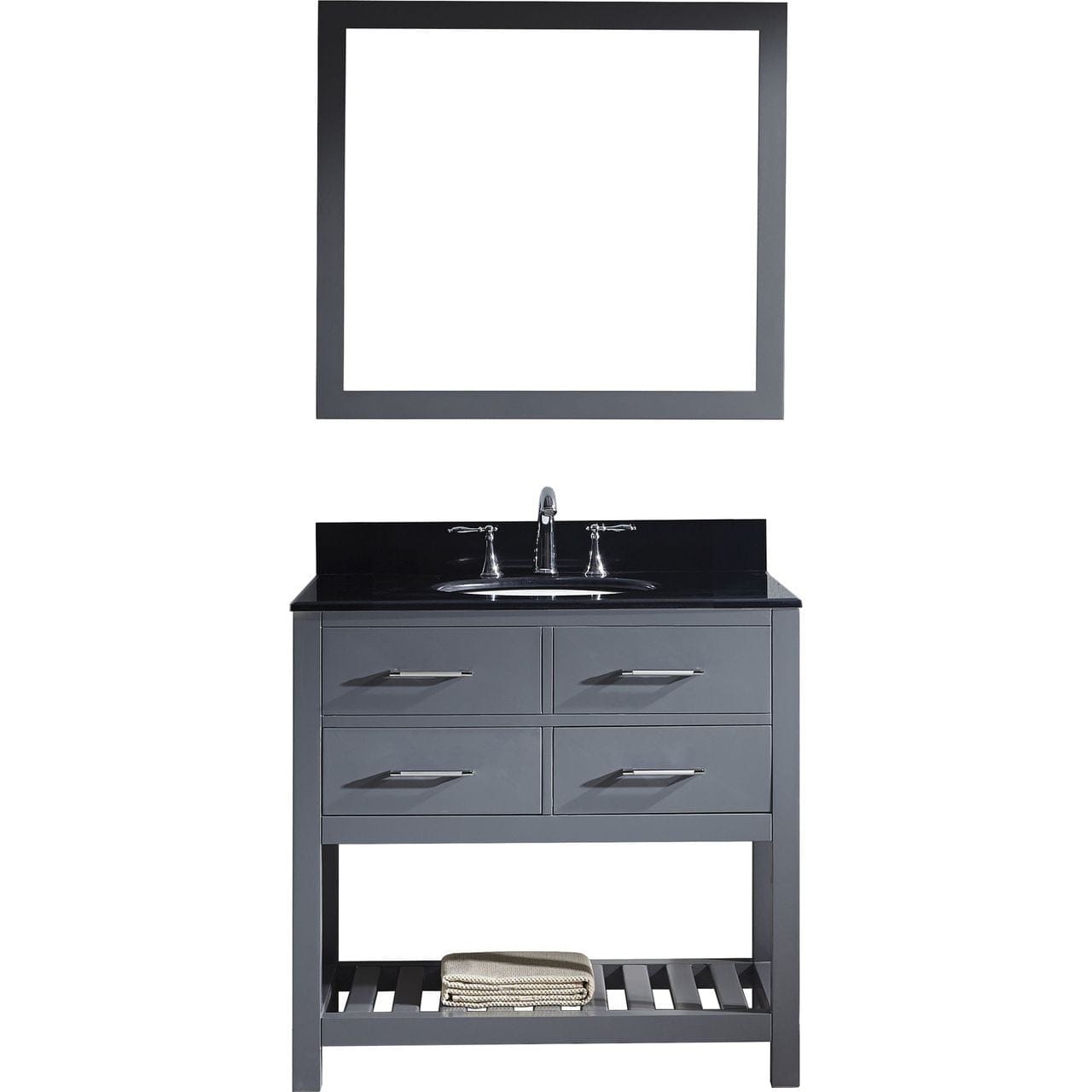 Details of the Virtu USA Caroline Estate 36" Single Bathroom Vanity Set in Grey w/ Black Galaxy Granite Counter-Top | Round Basin