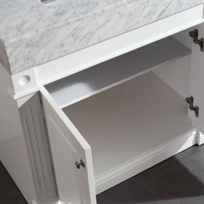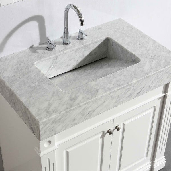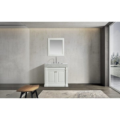 Odyssey 36 Inch White Modern Single Sink Vanity w/ Carrara Marble Top By Design Element