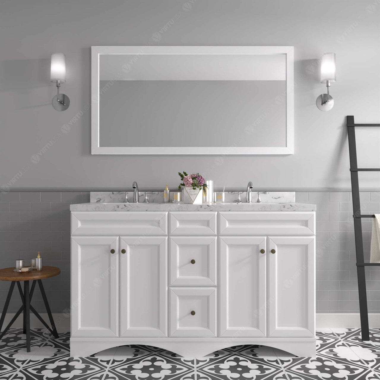 Talisa 60" Double Bath Vanity in White with Marble Quartz Top